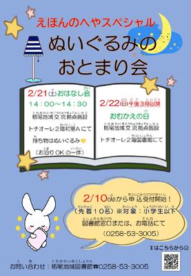 【栃尾館】2/21「えほんのへやスペシャル ぬいぐるみのおとまり会」