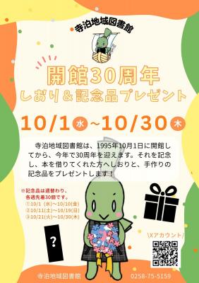 【寺泊館】10/1~30「開館30周年しおり&記念品プレゼント」