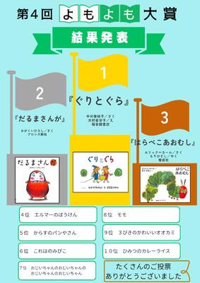 みなさんの投票で、よもよもブックスの中からお気に入りナンバーワンの本「よもよも大賞」を決定しました!