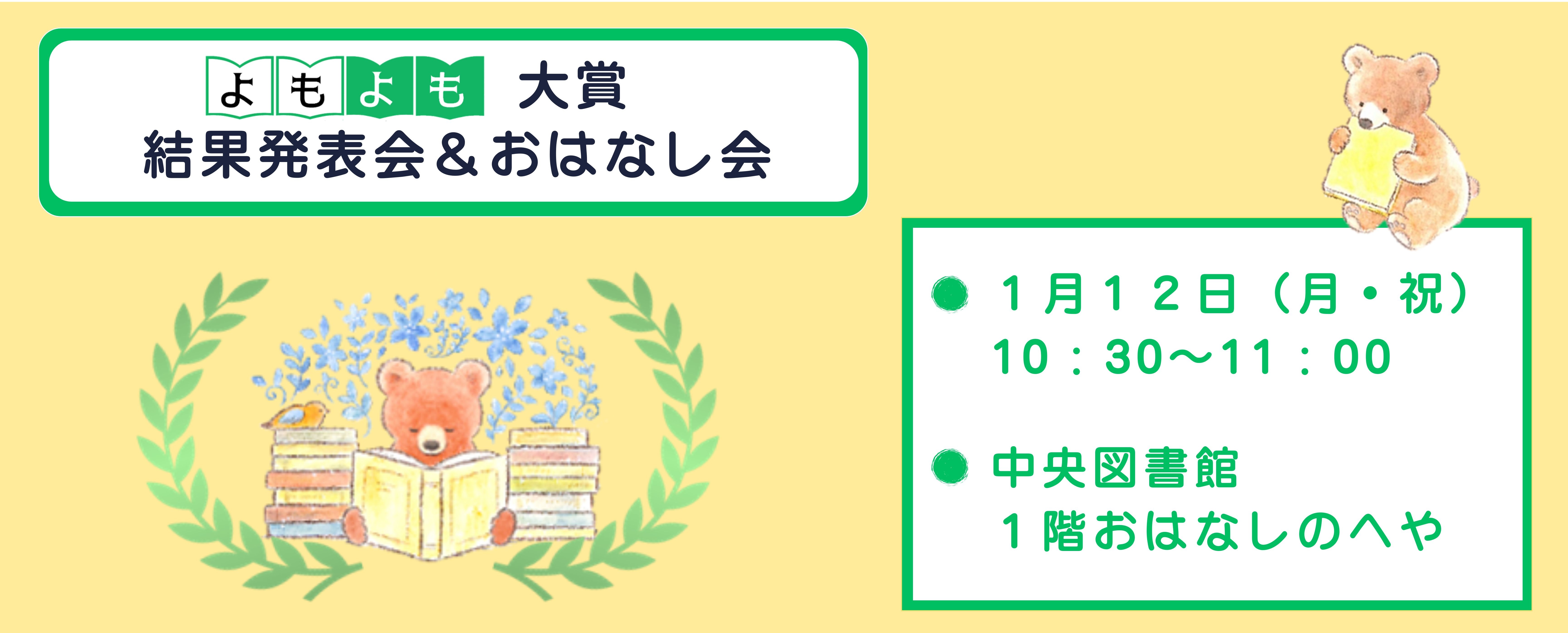 【全館】おはなし会の日程 11/25 【西館】 「100人サンタのおねだり絵本だいさくせん!」 11/25 【北館】12/13 おはなし“ピッピ”クリスマススペシャル 11/24 【南館】12/14「えほんのとびら~谷川俊太郎さんの絵本」 11/23 【寺泊館】12/19「えほんであそぼ」 11/22 {{item.Topic.display_title}} {{item.Topic.display_publish_start}} もっと見る