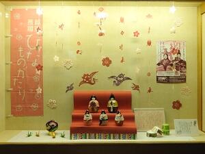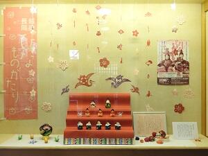 互尊文庫正面入口のディスプレイを「復興びな」に展示替えしました。