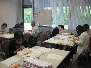 テキストは、江戸時代の摂対屋村(現在の長岡市摂田屋)の庄屋が松之山温泉へ湯治に出かけるために提出した願書です。一つ一つのくずし字のかたちの説明を受けながら、辞典を使って古文書解読の実践編を体験しました。初心者向けの古文書解読講座は今回が最終回です。31名の受講生が皆勤で参加されました。
