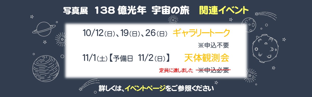 ただいま、開館30周年企画「写真展 138億光年 宇宙の旅」を開催中です。