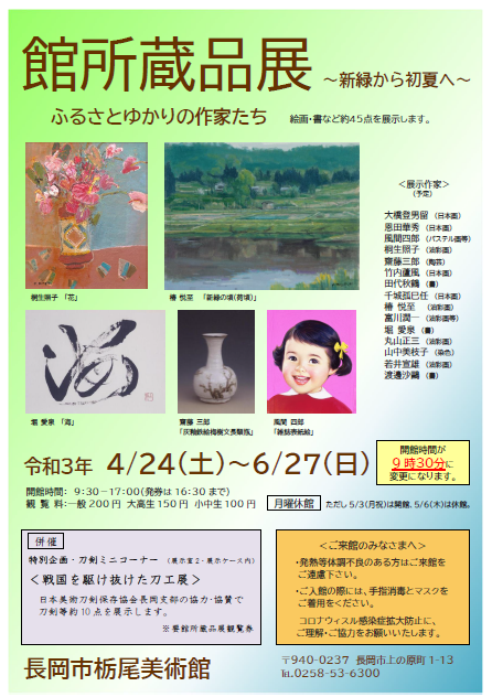 長岡市内の施設や個人蔵のもので、普段なかなか観覧する機会の少ない作品を展示・公開します。